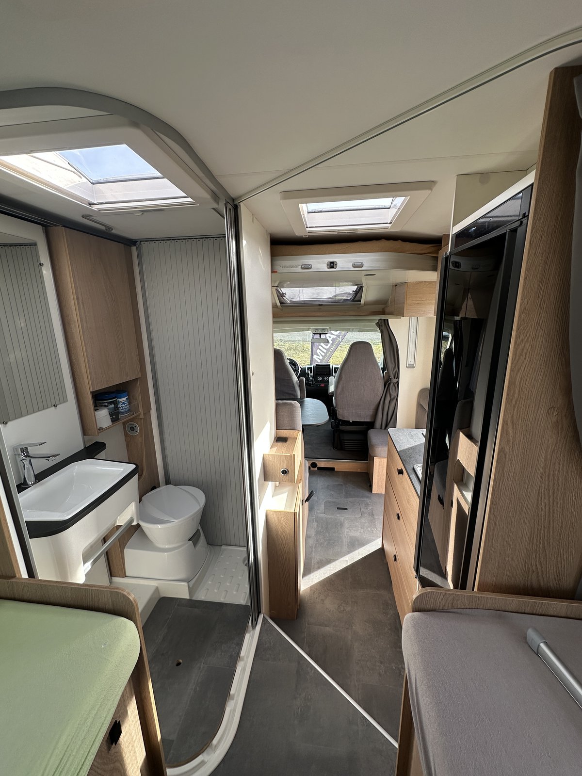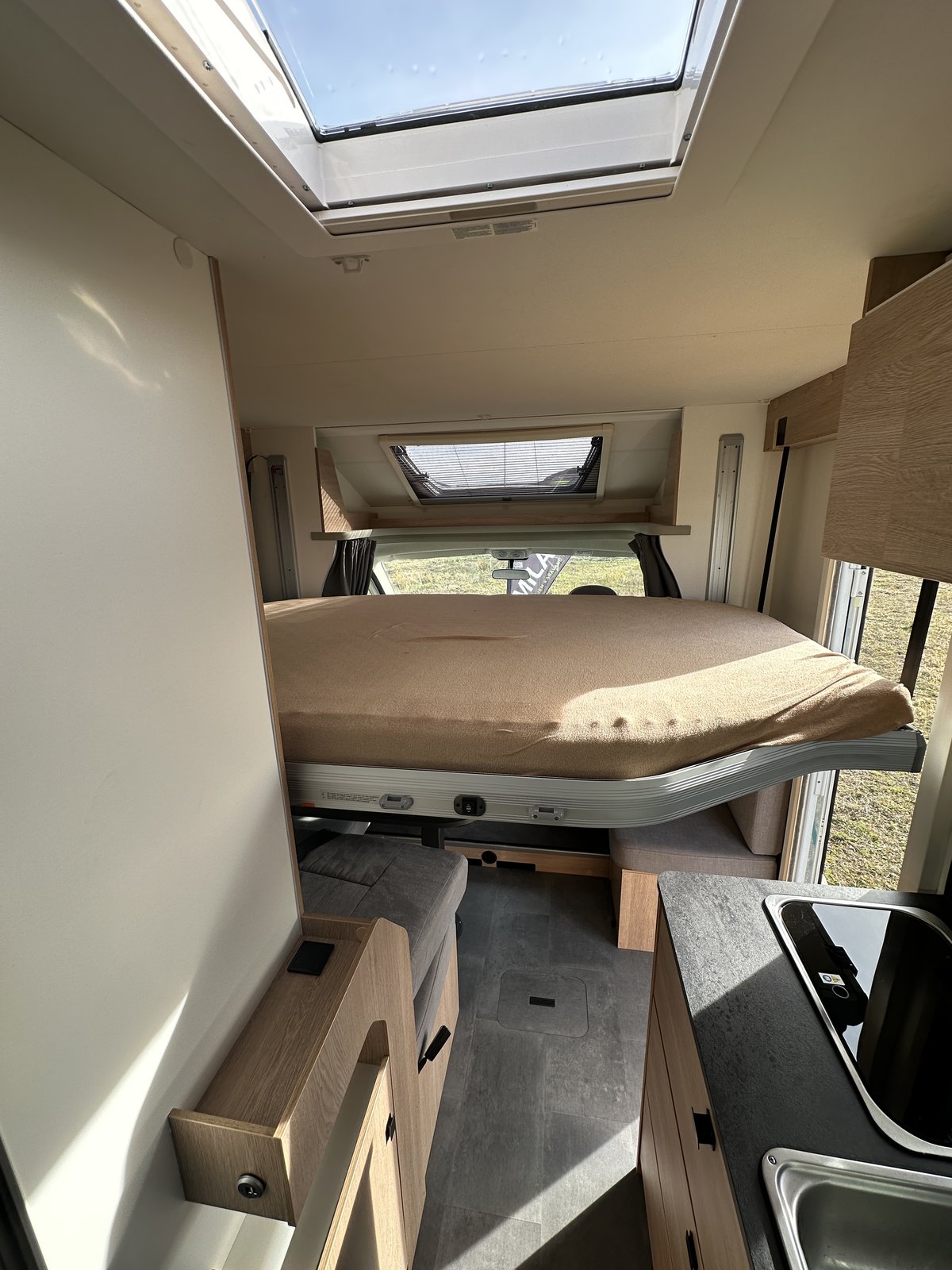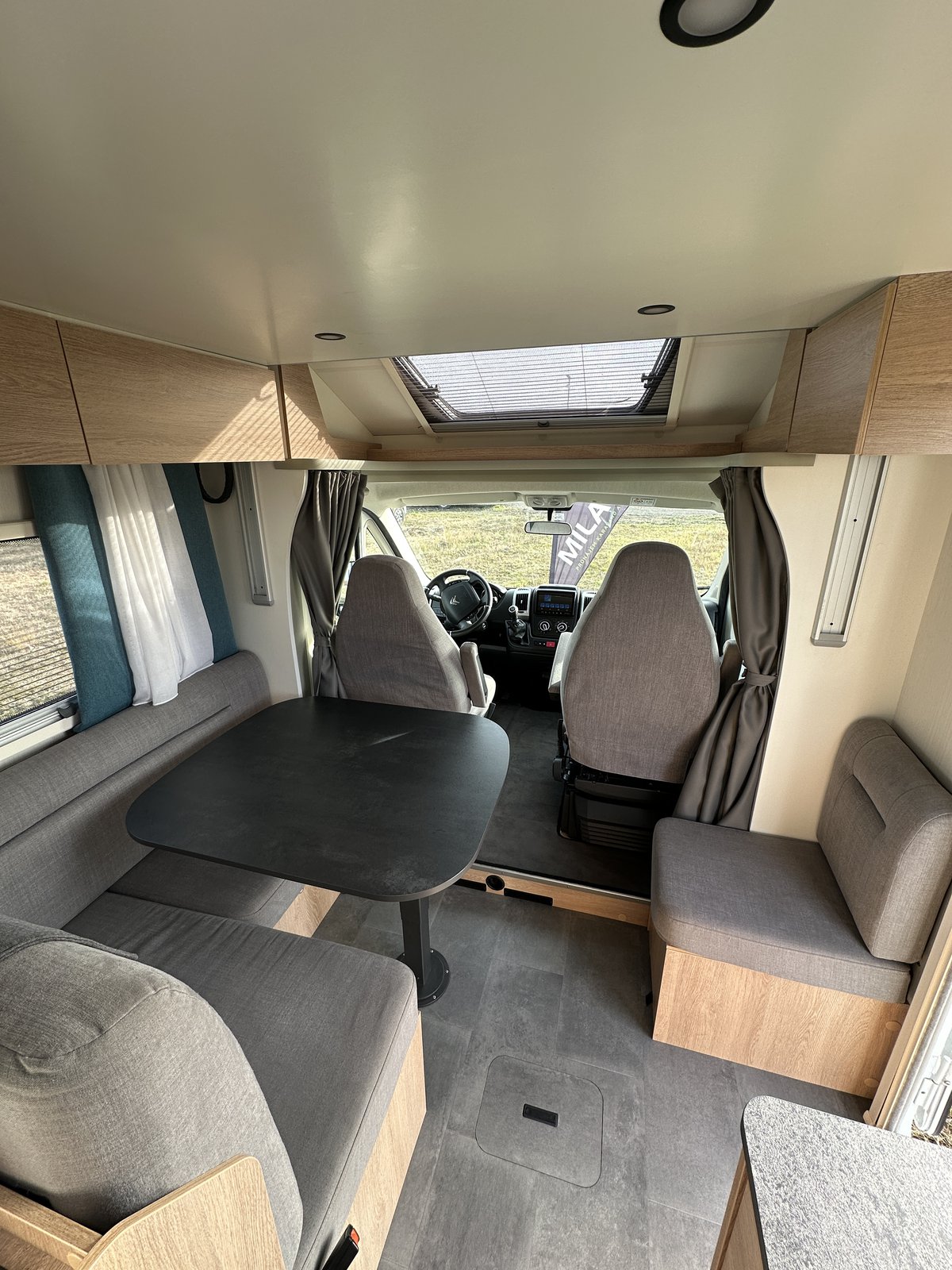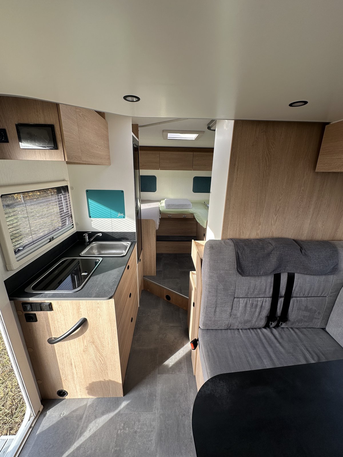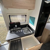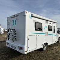 Polointegrovaný vůz Joa 70T ve velmi dobrém stavu, model 2023, pro 4 osoby na jízdu i spaní, perfektní výbava, Citroën 2.2, 165k, 16" ALU kola Citroën (na fotce zimní 15"), látkové čalounění, monocontrol, osvětlení garáže, zpětná kamera s 8" rádiem, zatemnění kabiny, přídavná matrace na stůl pro vytvoření dalšího lůžka, světlý matný povrch skřínek, tmavá kuchyňská deska a stůl, moskytiéra ve dveřích, prosklené dveře nástavby, el. schůdek, booster 25A, solární panel, markýza Fiamma 4m, otočné přední sedačky, izolovaná a vyhřívaná odpadní nádrž, topení Truma Combi 4, volant a řadicí páka v kůži, nosič na 4 kola, vyhřívaná garáž přístupná z obou stran, možnost vytvoření velkého letiště mezi zadními oddělenými lůžky, chromované budíky na přístrojové desce, ovládání rádia na volantu a mnoho dalšího