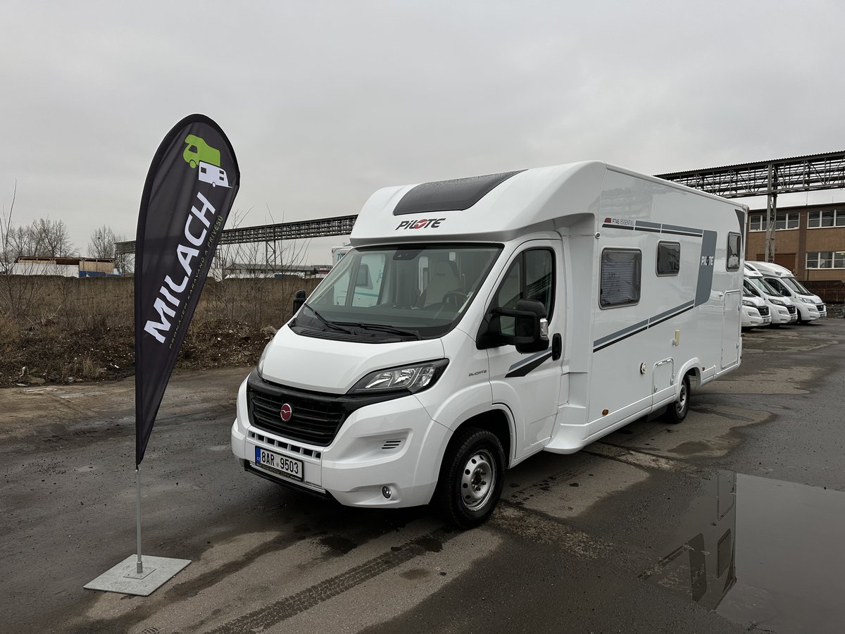 Polointegrovaný obytný vůz Pilote v dobrém stavu, model 2021, Fiat 2.3, 140k, první majitel, najeto 140.000km, servisní knížka, pravidelně servisované, pro 5 osob na jízdu a 5 osob na spaní, délka 7,45m, výška 2,85m, šířka 2,35m, velká vyhřívaná garáž přístupná z obou stran, 2-dinové 9"rádio s CarPlay, zpětná kamera, markýza Fiamma 4,5m, klimatizace Dometic FreshJet 1700, 16" hliníkové Fiat disky (na fotce zimní 15" plechové disky), zimní paket - vyhřívaná a izolovaná odpadní nádrž, velká automatická absorpční lednice Dometic, topení Truma Combi 6, prostorný sprchový kout s oddělenou toaletou, 2x100W solární panel, nová 100Ah gelová nástavbová baterie, držák na TV, možnost vytvoření velkého letiště mezi zadními oddělenými lůžky, zatemnění kabiny, booster 25A, dešťový senzor, automatická klimatizace, centrální zamykání a mnoho dalšího. Vůz je k dispozici ihned. Cena: 1.350.000,- bez DPH.