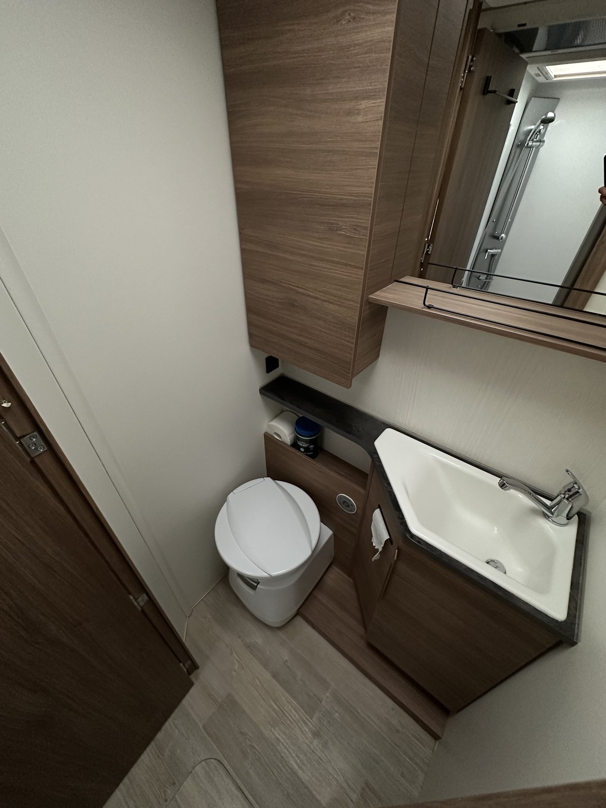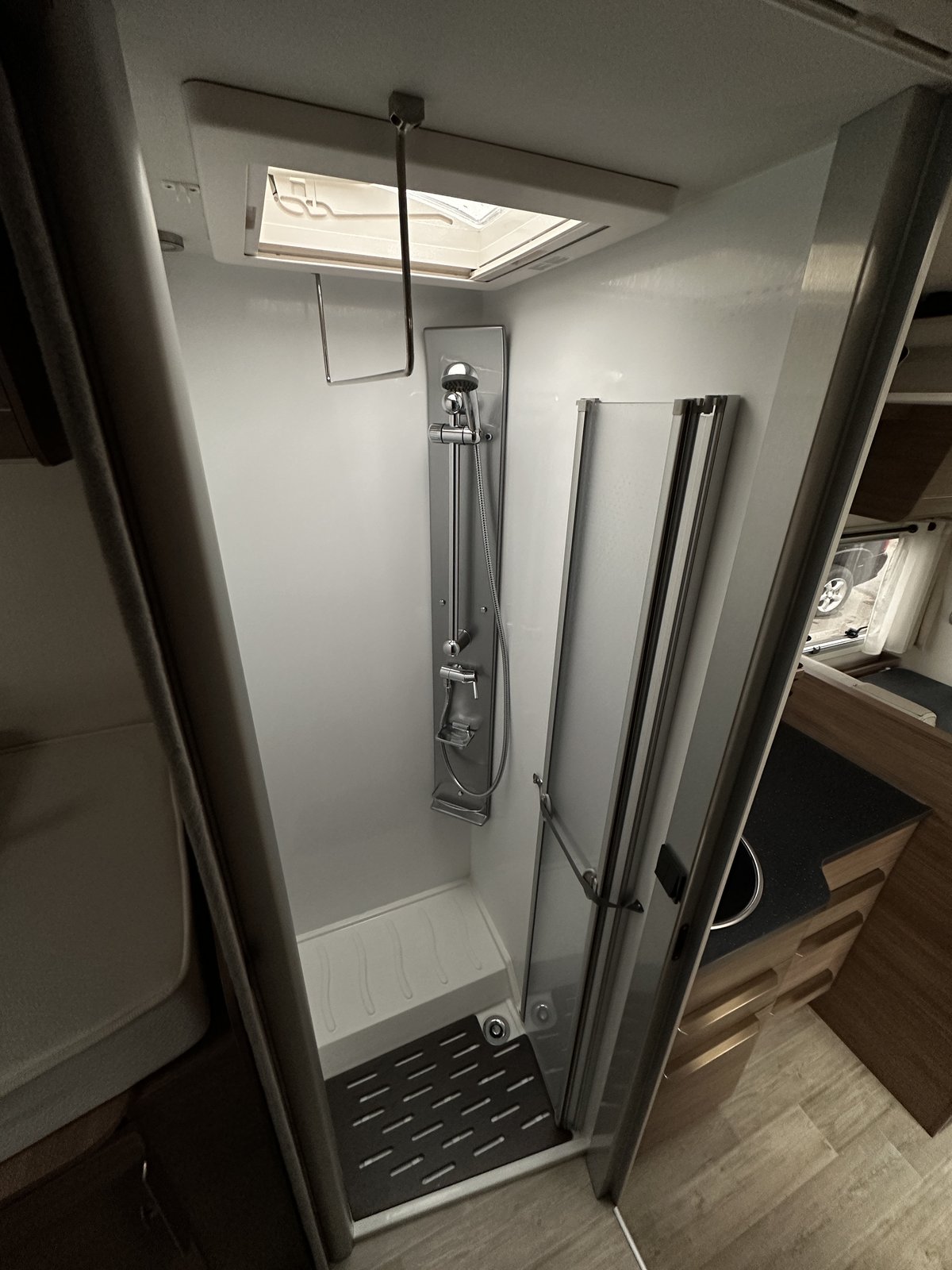 Další výbava: manuální převodovka, 6 rychlostních stupňů, 2x airbag, airbag řidiče, ABS, stabilizace podvozku (ESP), posilovač řízení, man. klimatizace, nezávislé topení, tempomat, LED denní svícení, plní 'EURO VI', palubní počítač, nastavitelný volant, el. přední okna, panoramatická střecha, el. zrcátka, imobilizér, centrál dálkový, centrální zamykání, potahy kůže, kožené čalounění, výškově nastavitelná sedadla, výškově nastavitelné sedadlo řidiče, polohovací sedadla, mlhovky, zadní mlhovka, couvací světlo, start-stop systém, otáčkoměr, USB, autorádio, venkovní teploměr, vyhřívaná zrcátka, autochladnička, střešní šíbr man., střešní okno, dřevěné obložení, sprcha, dvojitá okna, WC, přední otočná sedadla, boiler, záruka